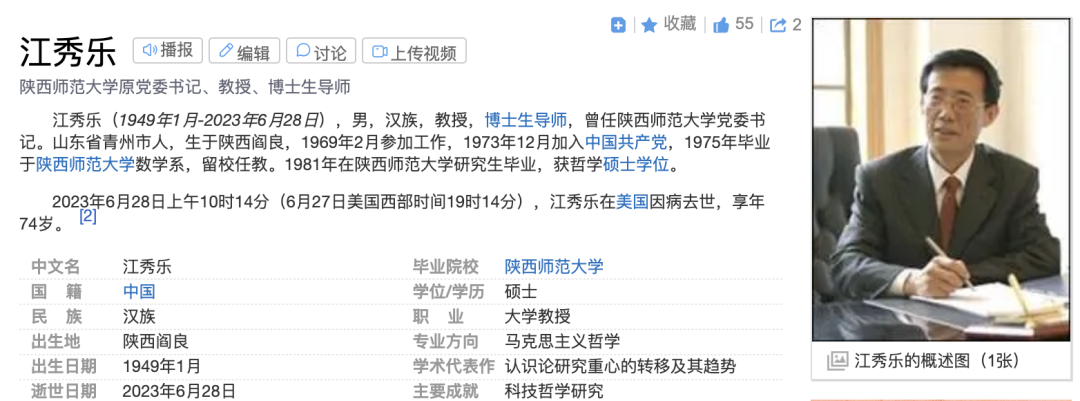 6月29日,“江秀乐同志治丧委员会”在陕西师范大学官网首页发布讣告: